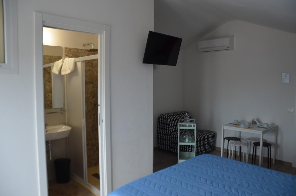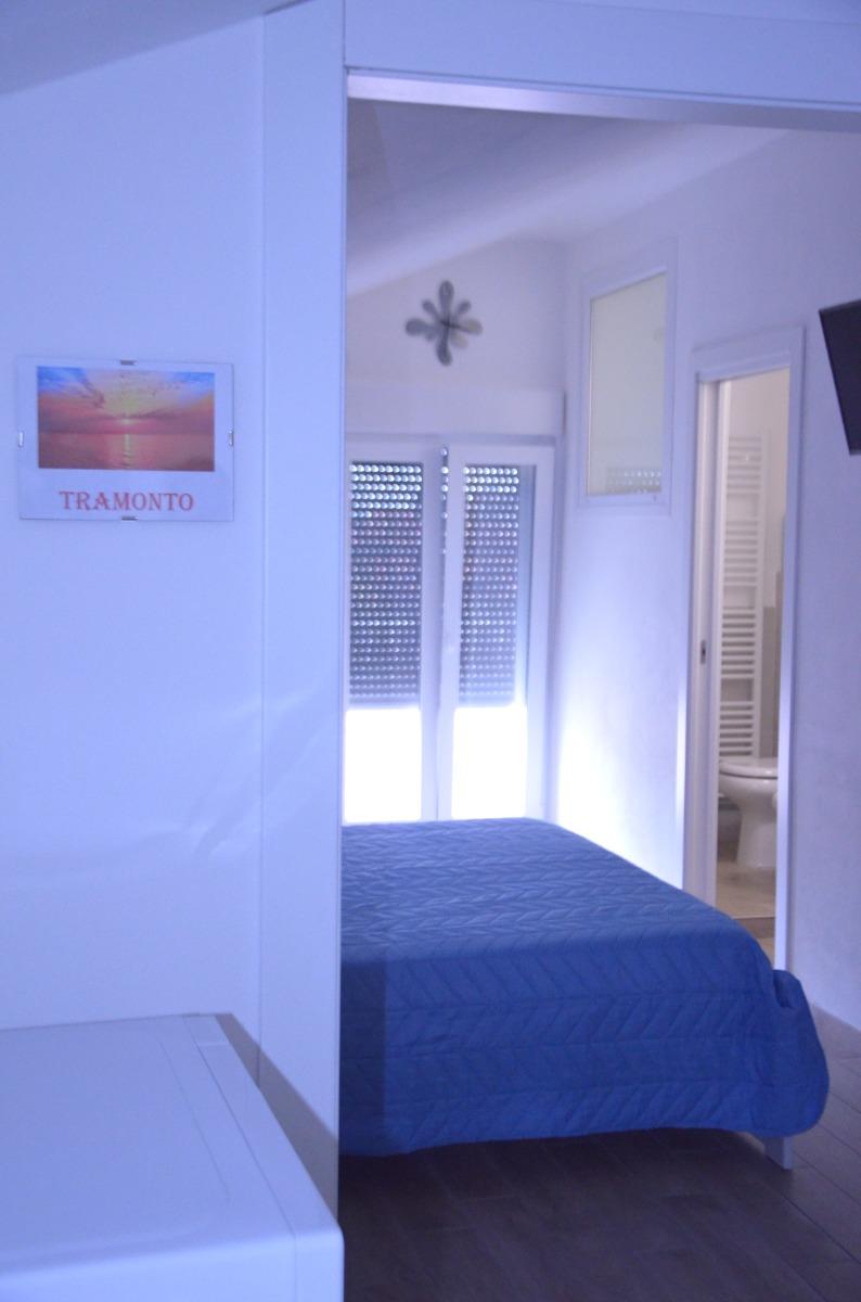 The "Tramonto" room is a double room with a double bed and a third single bed available for children under 12 (on a sofa bed).